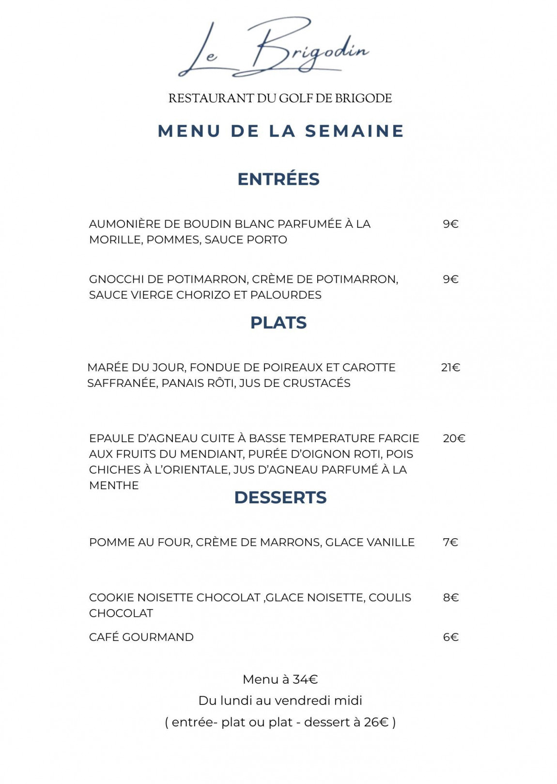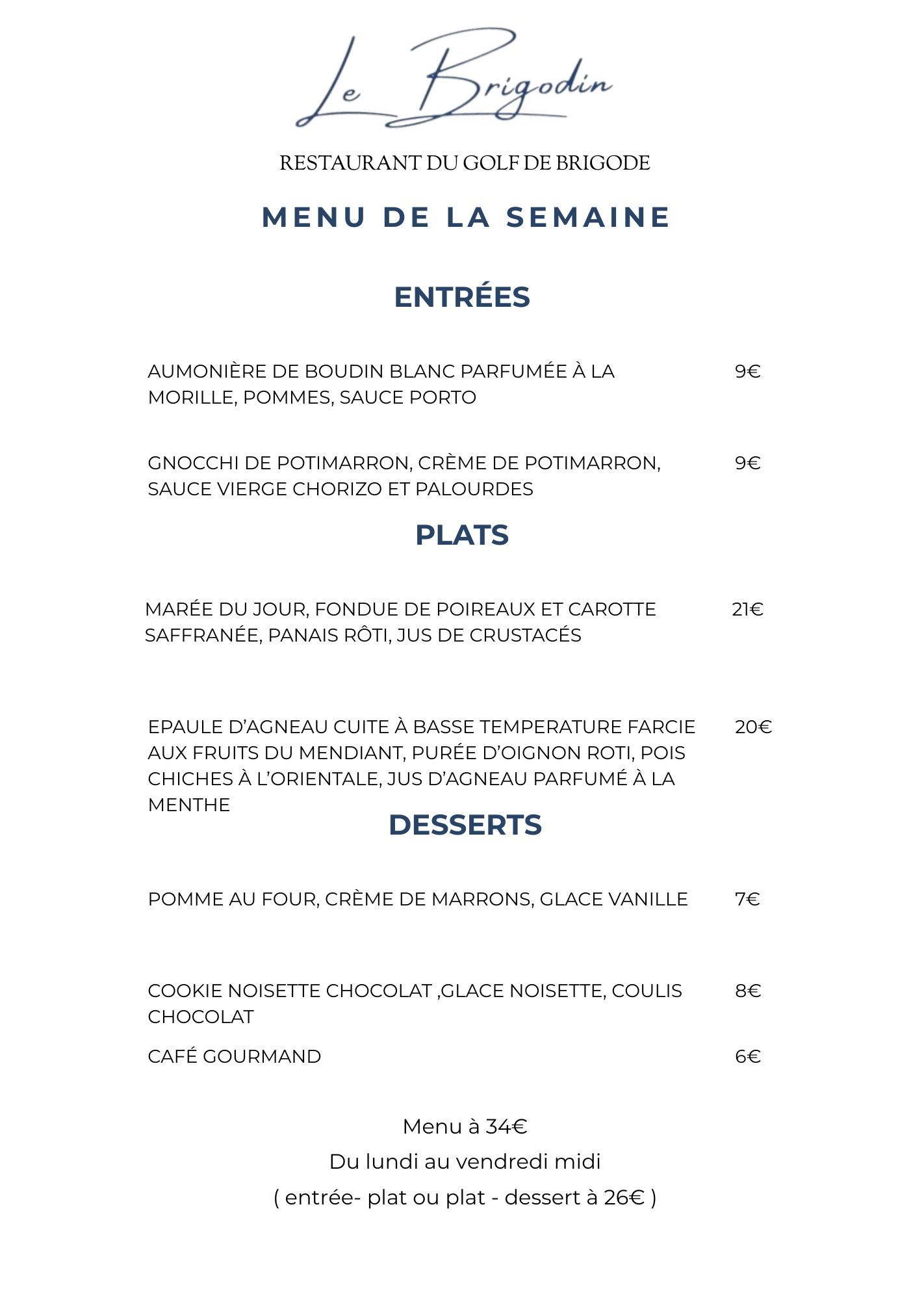 Menu de la semaine